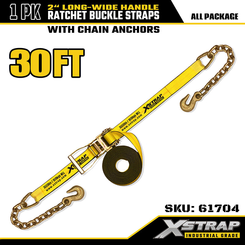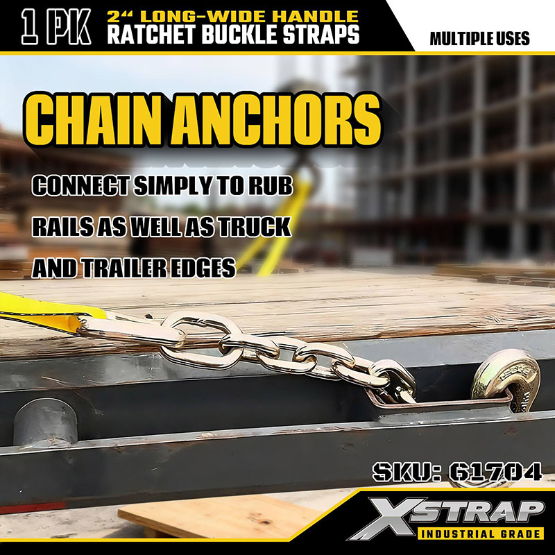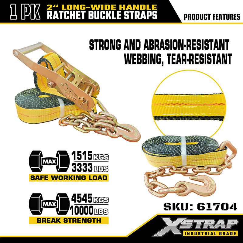 La correa de trinquete resistente Xstrap con ganchos de cadena está diseñada para asegurar cargas grandes, pesadas y de forma irregular en entornos de transporte exigentes. En comparación con los amarres estándar, los ganchos de cadena reforzados brindan una conexión más fuerte y versátil a los puntos de anclaje, especialmente adecuados para aplicaciones industriales, de construcción y agrícolas. El mango largo y ancho extendido garantiza el máximo apalancamiento, un trinquete más suave y un esfuerzo reducido, lo que permite a los operadores lograr una tensión firme y segura incluso bajo carga máxima.