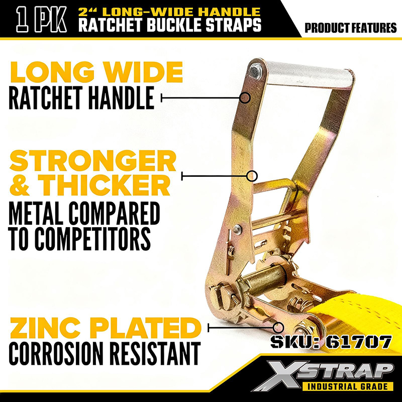 Amarre con trinquete de alta resistencia de 2” con mango largo y ancho