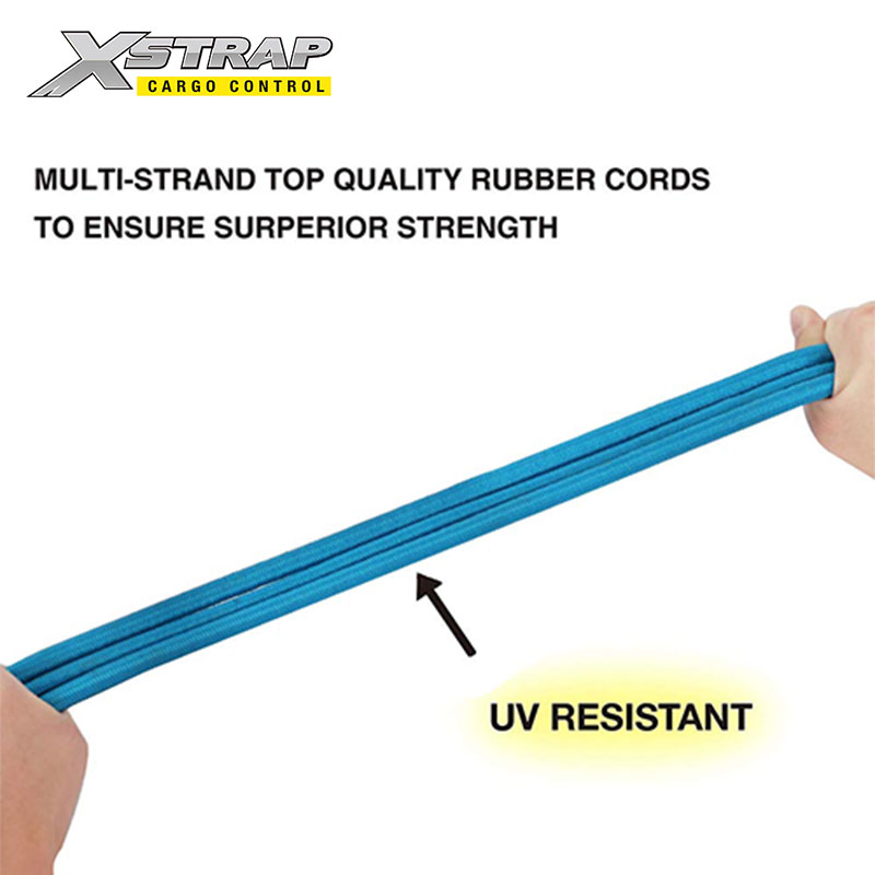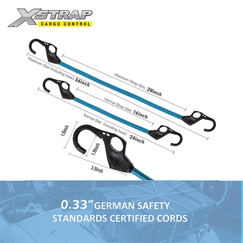 Los cables de los bungee con Ganchos de agujeros de los dedos hechos de goma y látex de tejido cruzado resistente a los rayos UV superiores, no se usarán delgados o rotos con uso diario o diferentes climas.