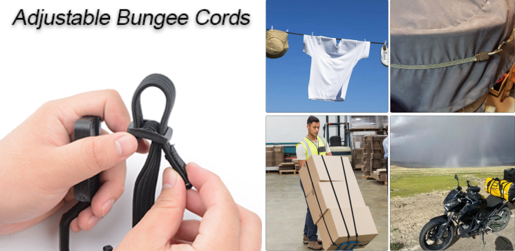 Los cables de bungee ajustables ofrecen una estabilidad mejorada y una tendencia reducida a profundizar en los elementos. Son versátiles y adecuados para una amplia gama de aplicaciones, que incluyen equipos, organización de almacenamiento, equipaje atado o lonas, equipos seguros al aire libre, jardín, garaje o aplicaciones de viaje.