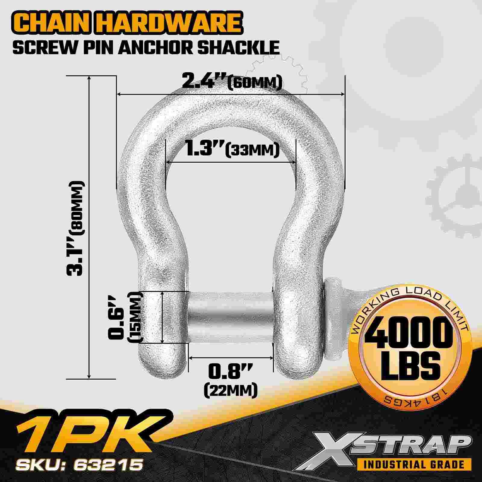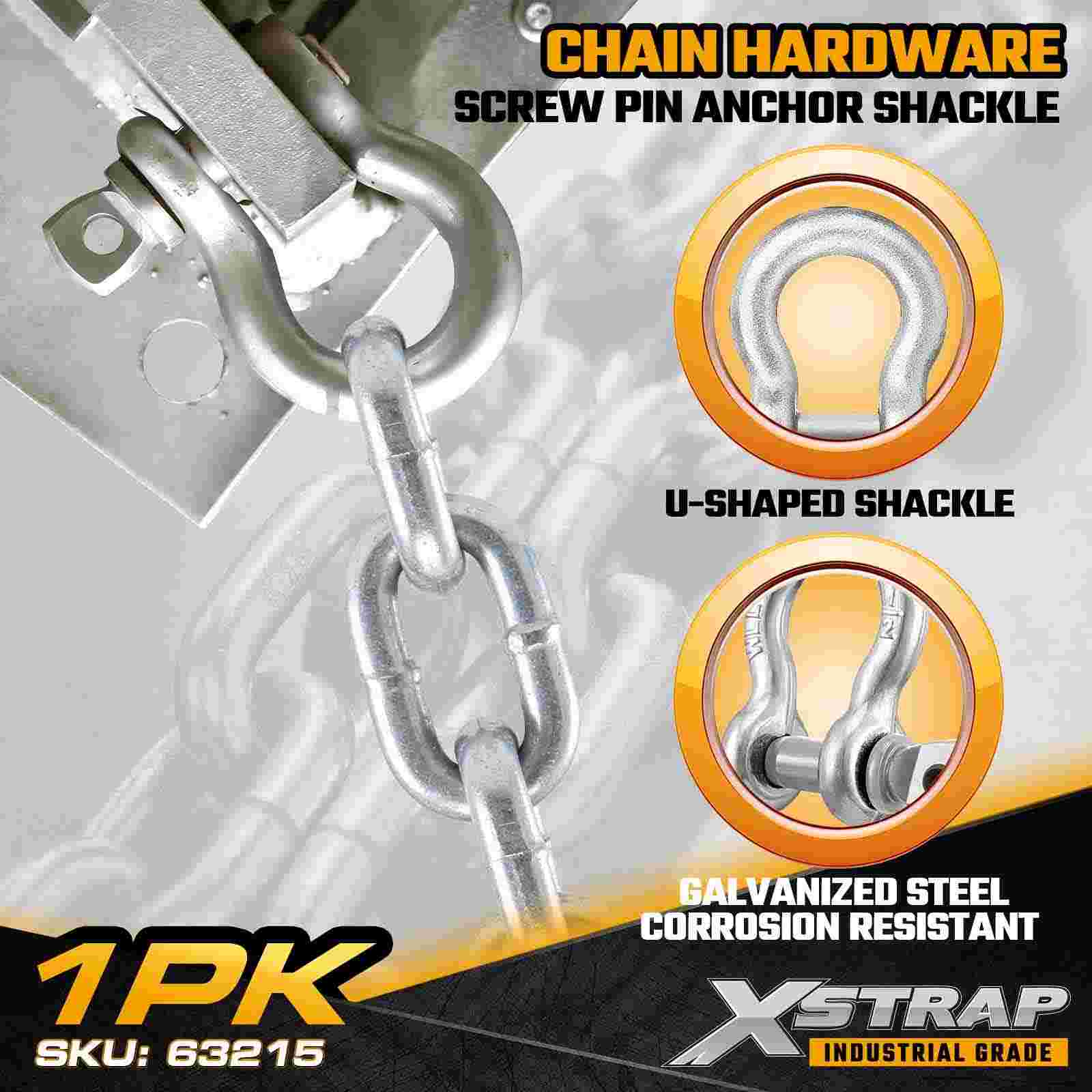 El grillete de anclaje con pasador roscado de 1/2" Xstrap 63215 es un componente de conexión y aparejo de alta resistencia diseñado para aplicaciones de elevación, remolque, anclaje y sujeción industrial. Fabricado en acero forjado y protegido con un acabado galvanizado resistente a la corrosión, este grillete ofrece un límite de carga de trabajo de 4,000 lb, lo que lo hace adecuado para operaciones de servicio medio a pesado. El diseño de pasador roscado permite una instalación y extracción rápidas, lo que ofrece comodidad tanto para configuraciones permanentes como temporales. en entornos de construcción, marinos y de servicios públicos.