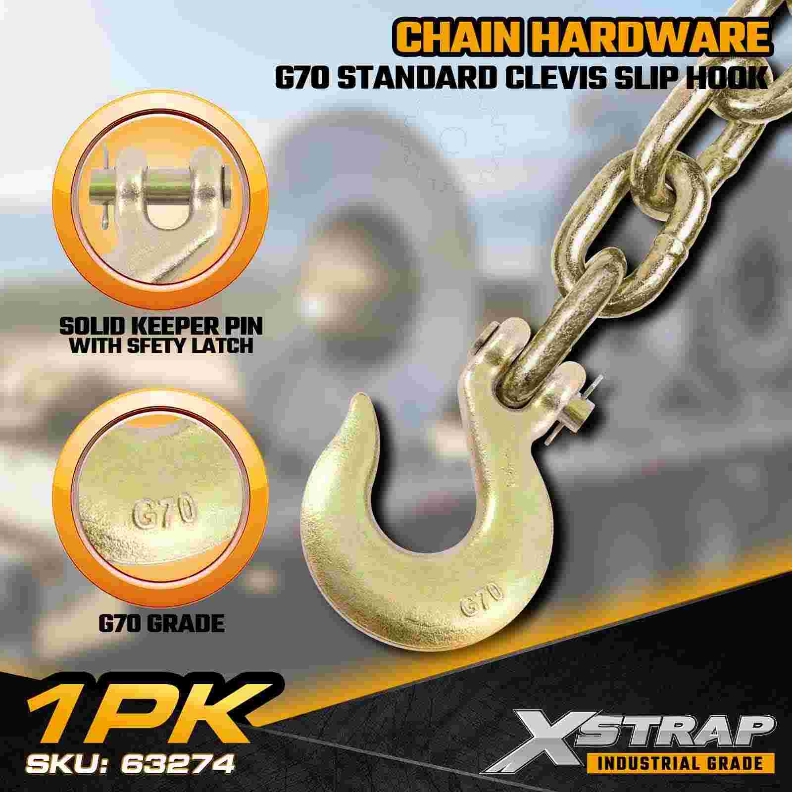 El gancho deslizante de horquilla estándar Xstrap 63274 de 1/2" es un componente de cadena de grado 70 de alta resistencia diseñado para remolques de plataforma, sistemas de remolque, operaciones de recuperación y sujeción de carga industrial. Construido con acero de aleación de alta resistencia y protegido con un acabado de cromo dorado resistente a la corrosión, este gancho deslizante G70 ofrece una durabilidad excepcional para entornos de transporte exigentes. El gancho estilo deslizante permite un movimiento controlado de la cadena, lo que lo hace ideal para aplicaciones que requieren puntos de conexión ajustables y posicionamiento flexible de la carga.