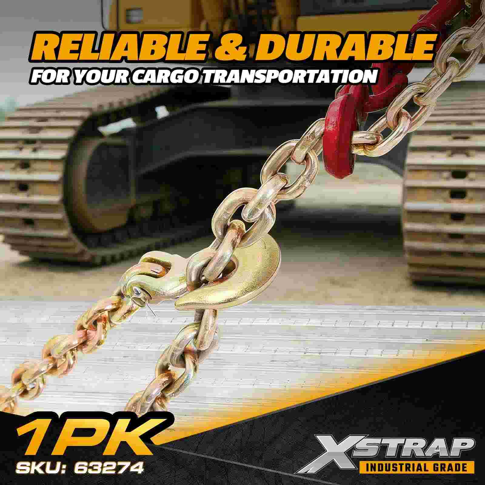 - Compatible con cadenas de transporte Grado 70 de 1/2": Diseñado con precisión para adaptarse a cadenas G70 de 1/2", lo que proporciona una conexión segura pero flexible para remolques de plataforma, configuraciones de remolque, transporte de maquinaria pesada y sujeción de carga industrial.