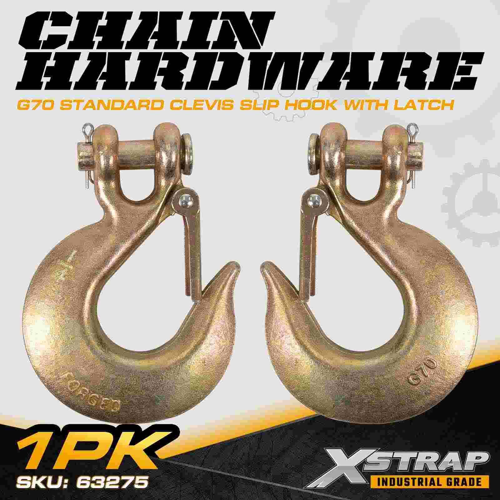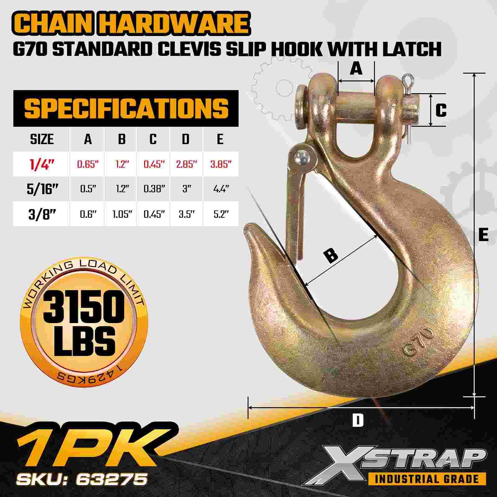 El gancho deslizante de horquilla estándar con pestillo de 1/4" Xstrap 63275 es un componente de cadena con clasificación de transporte de grado 70 diseñado para remolques de plataforma, sistemas de remolque, trabajos de recuperación y sujeción de carga industrial. Hecho de acero de aleación de alta resistencia y protegido con un acabado cromado dorado resistente a la corrosión, este gancho deslizante G70 ofrece un rendimiento confiable en entornos exigentes. El pestillo de seguridad integrado proporciona una capa adicional de seguridad, evitando la liberación accidental de la cadena durante las operaciones de transporte o elevación.