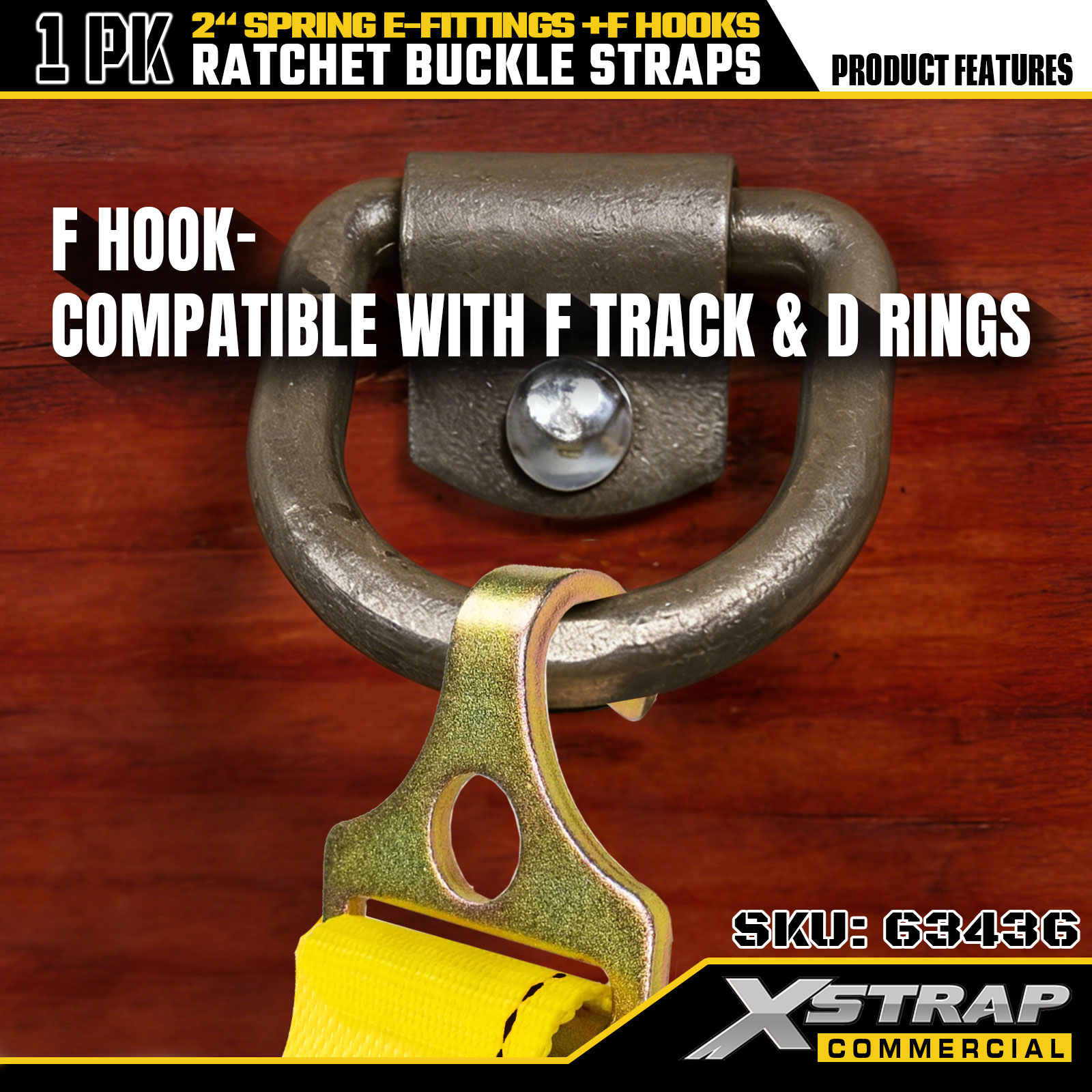 - SEGURO Y CONFIABLE: cada correa de trinquete de 2" x 12' (1PK) tiene una SWL de 733 lb y una resistencia a la rotura de 332 lb, con accesorios en E de resorte y ganchos en F para un bloqueo firme de la carga. Ideal para cajas, electrodomésticos y suministros de mudanza, compatible con sistemas E-Track en remolques, camiones y almacenes.