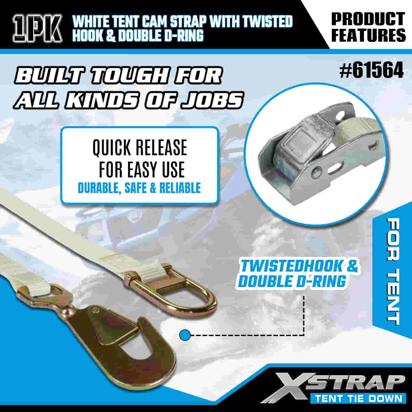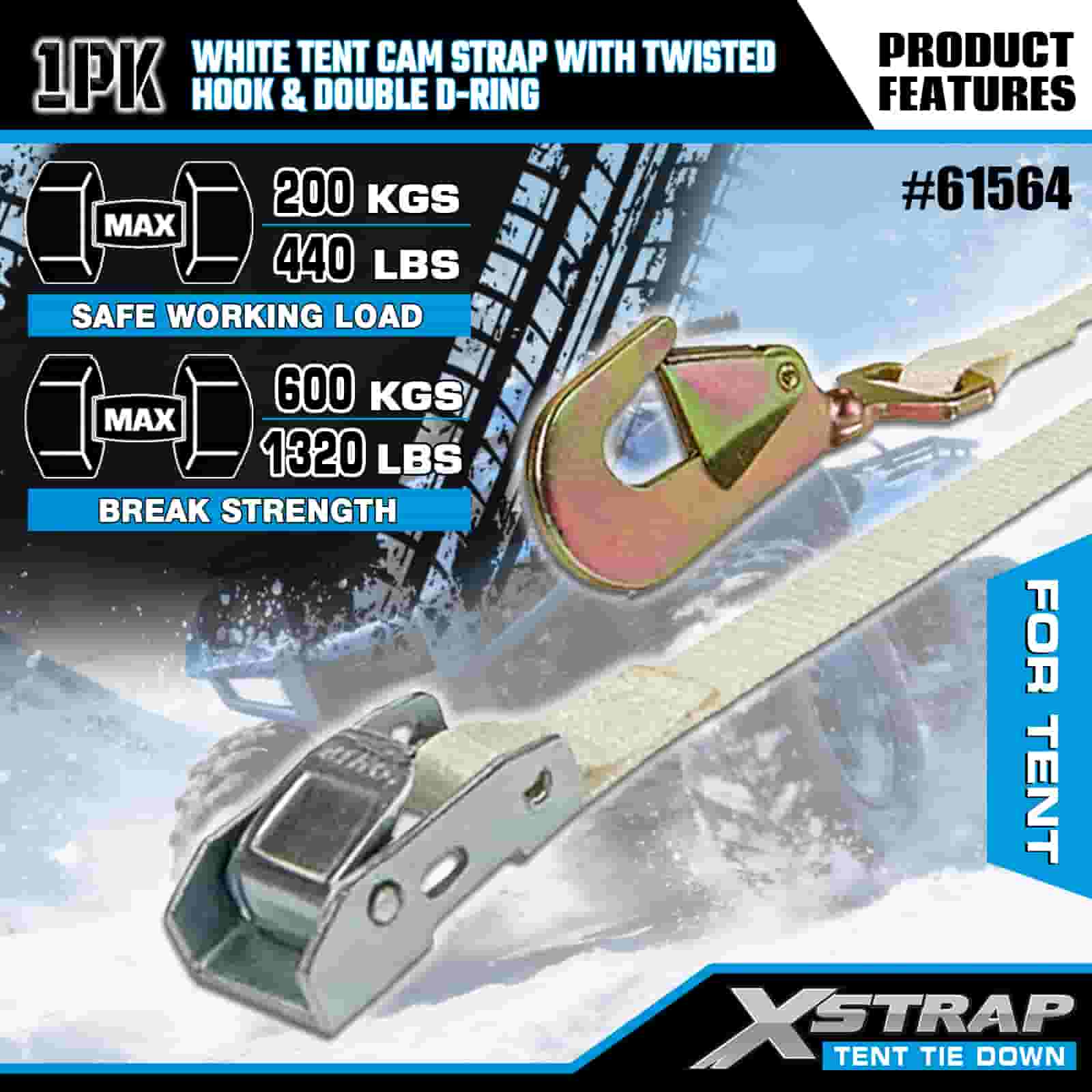 - Esencial para acampar y eventos, diseñada para el viento y el clima: diseñada específicamente para asegurar tiendas de campaña, marquesinas y refugios para eventos, esta correa de leva mantiene estable su configuración al aire libre incluso con ráfagas de viento o lluvia. Los 20 años de experiencia en control de carga de XStrap garantizan que su refugio permanezca anclado, sin importar el pronóstico.