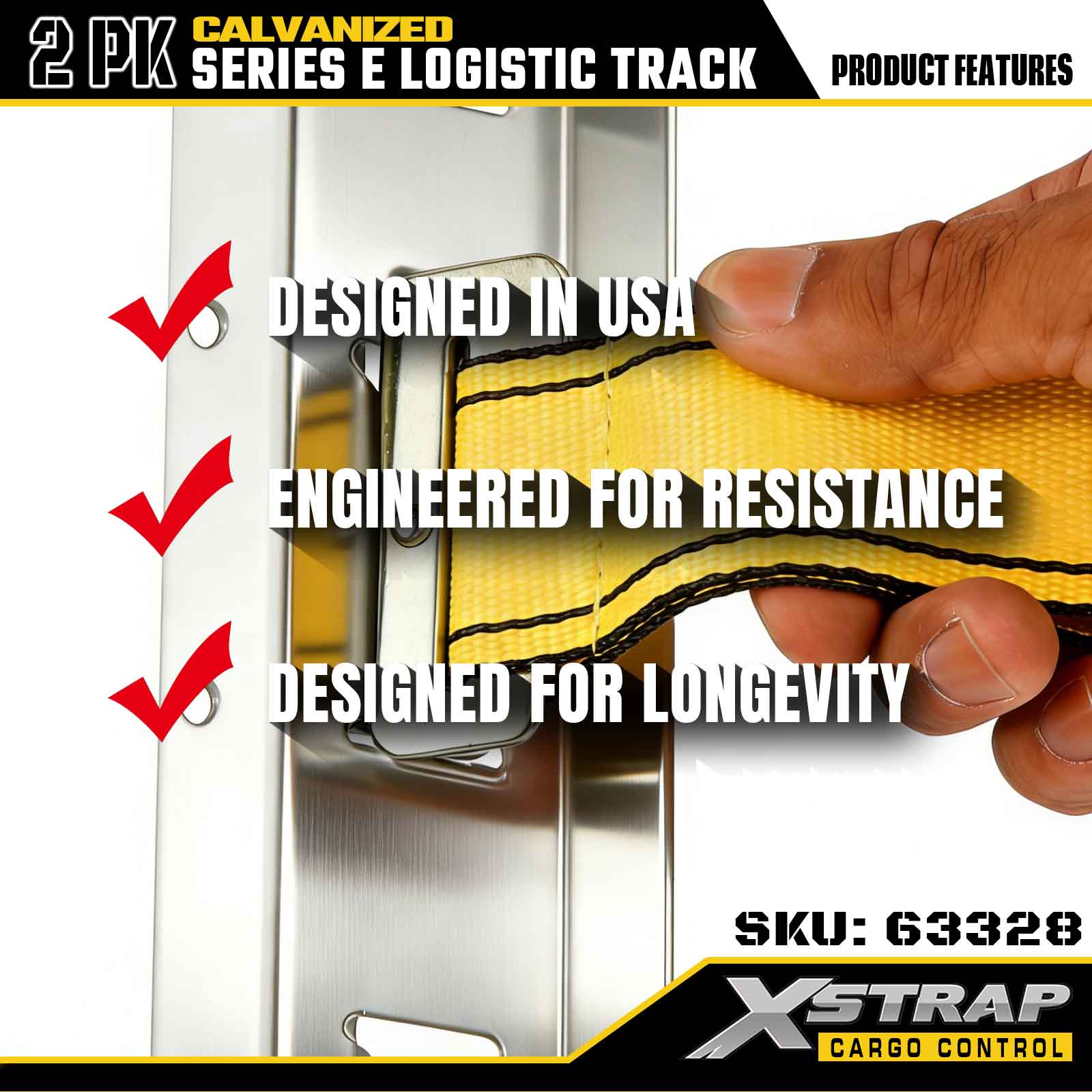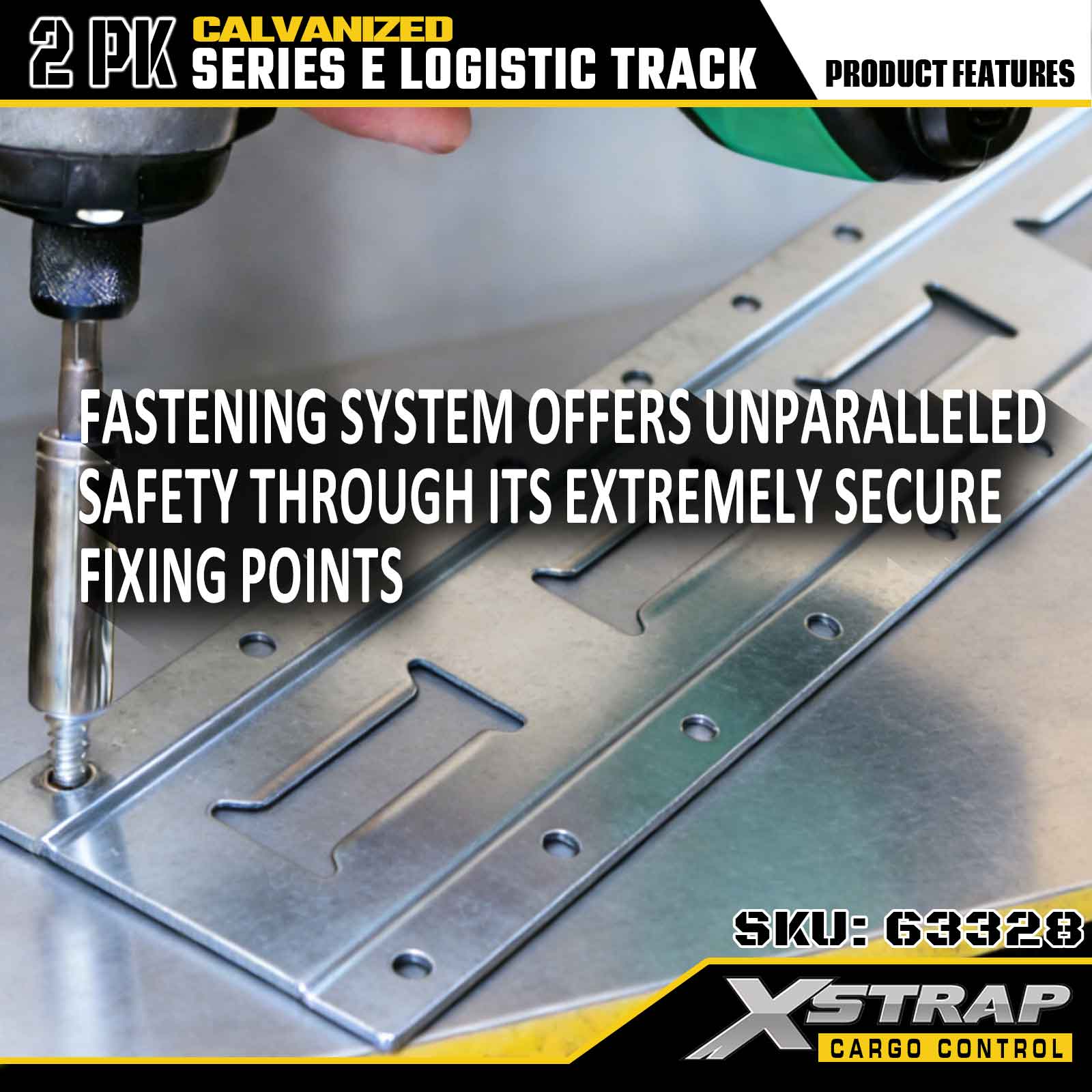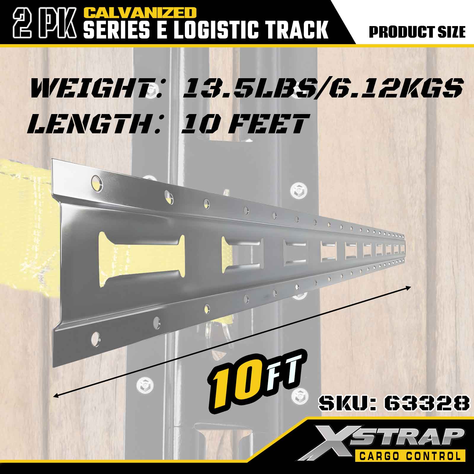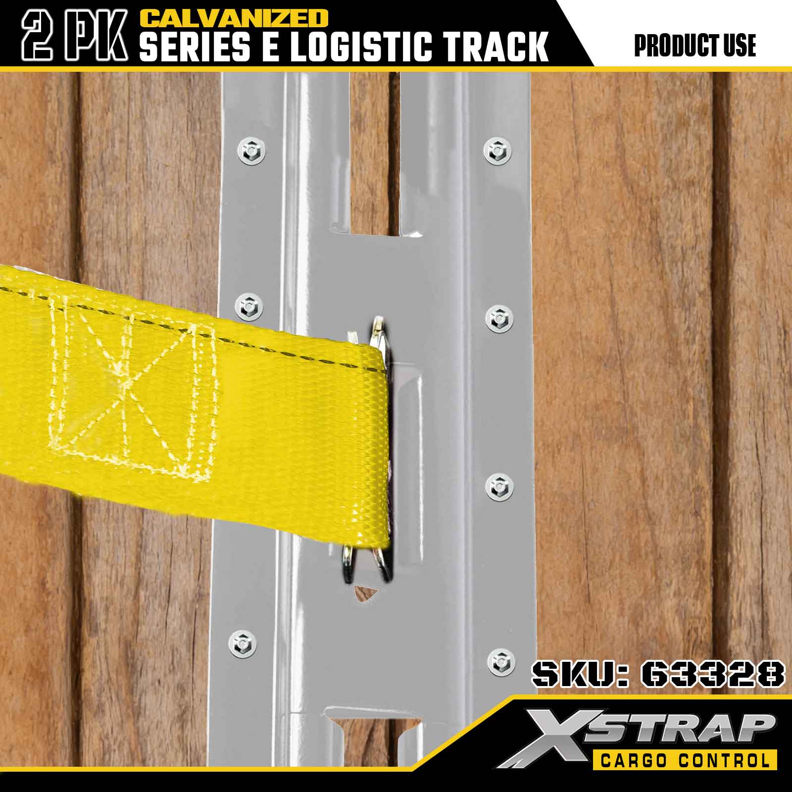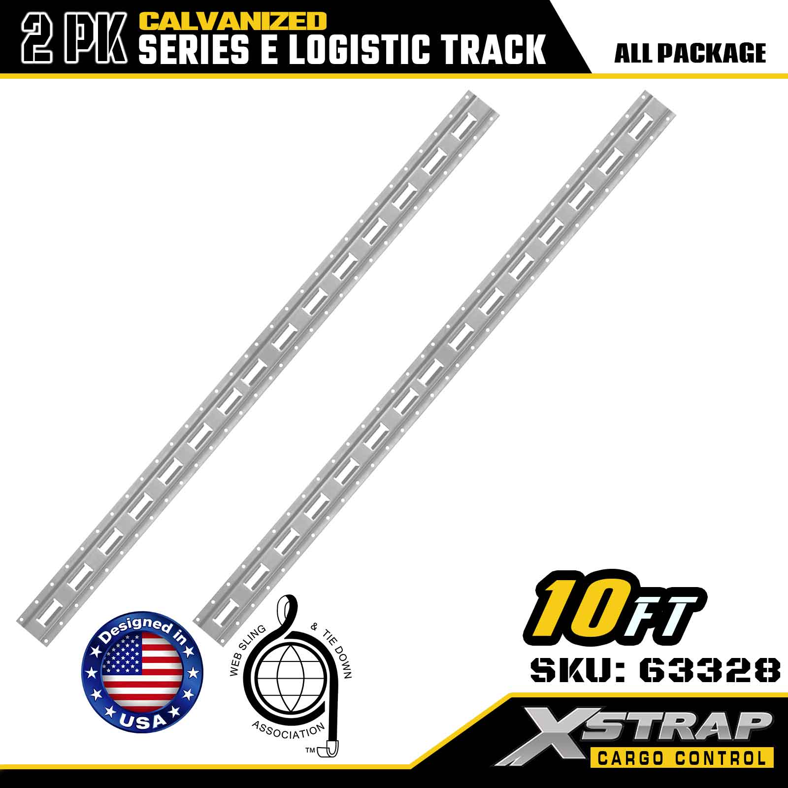 Xstrap 63328 Riel de amarre E-Track plateado galvanizado de 10 pies, acero calibre 12 con acabado galvanizado, capacidad de carga de 6000 libras, paquete de 2 para asegurar la carga