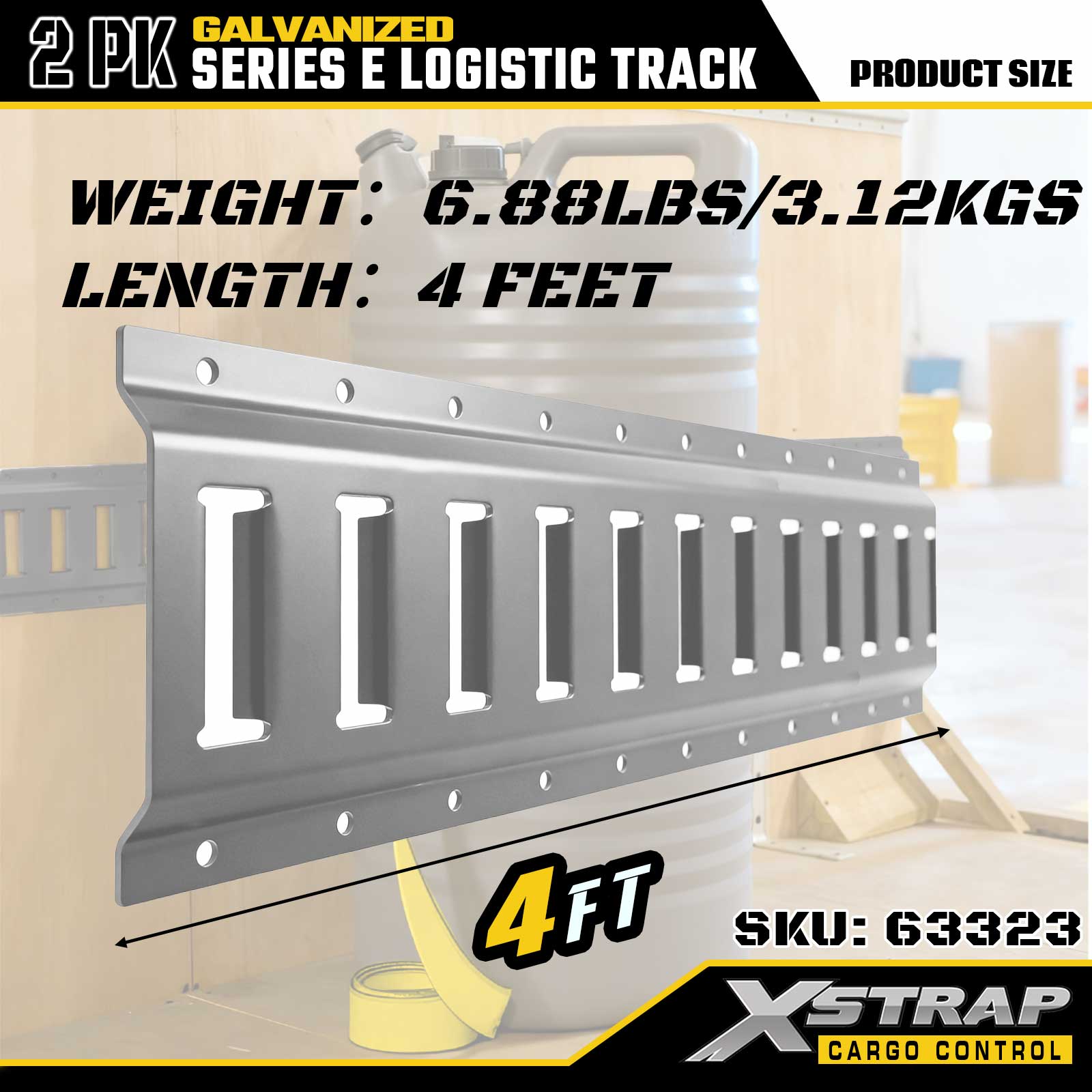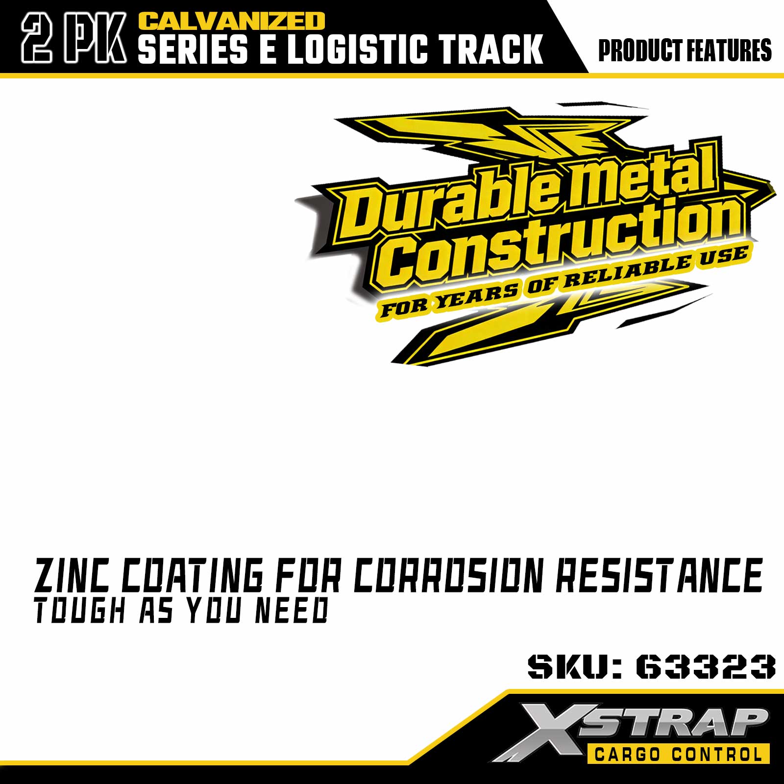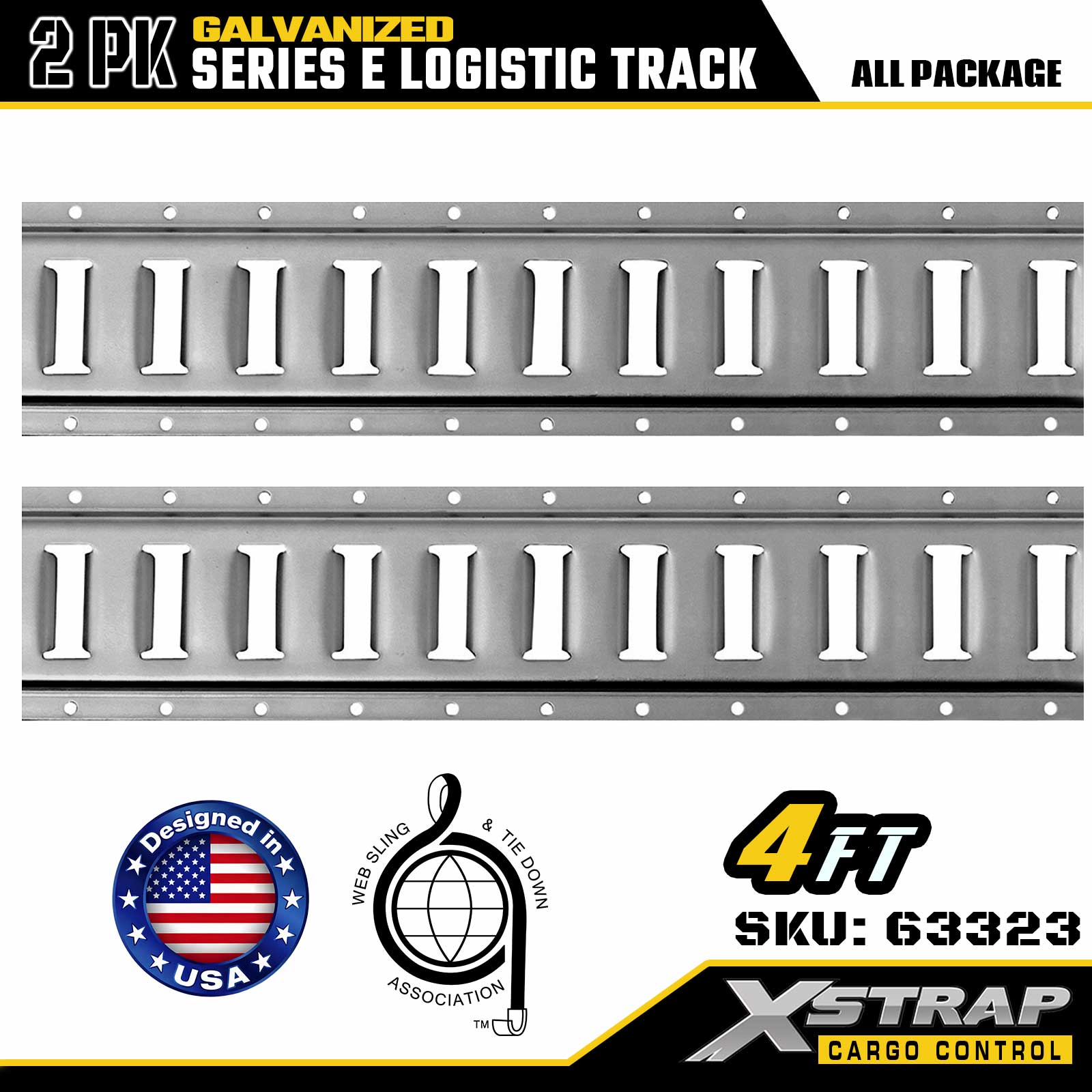 Xstrap 63322 Riel de amarre E-Track plateado galvanizado de 4 pies, acero calibre 12 con acabado galvanizado, capacidad de carga de 6000 libras, paquete de 2 para asegurar la carga
