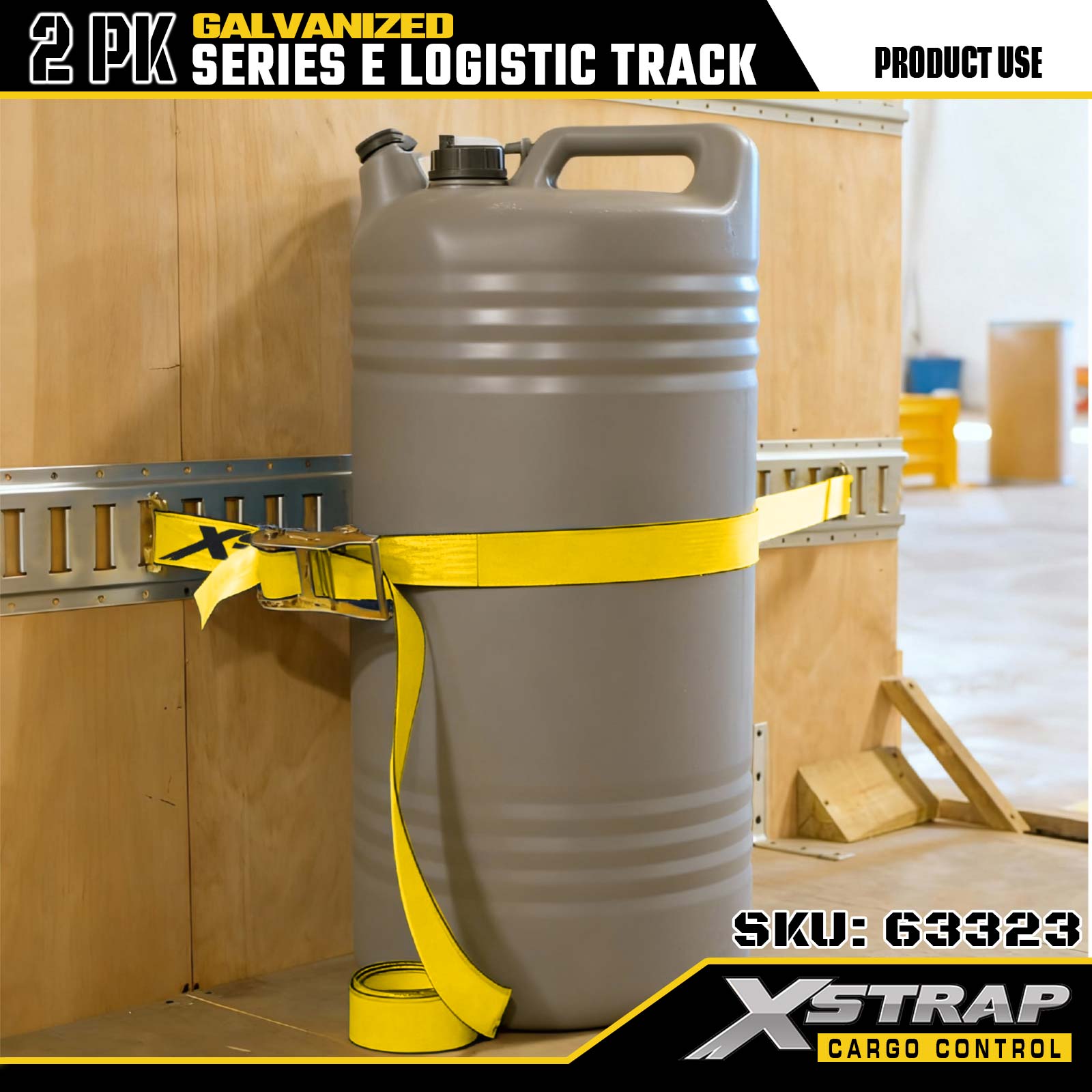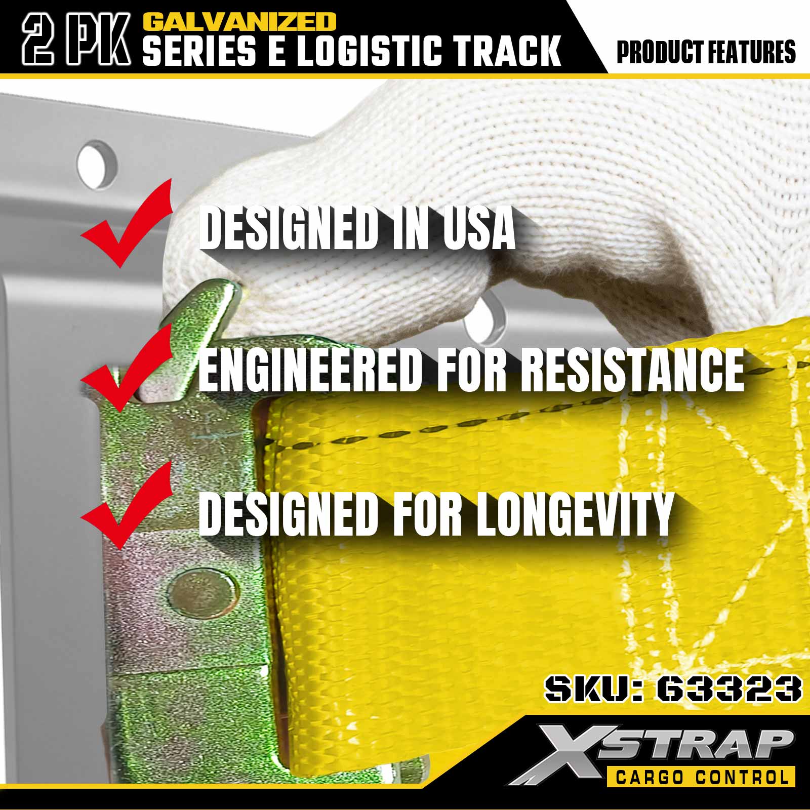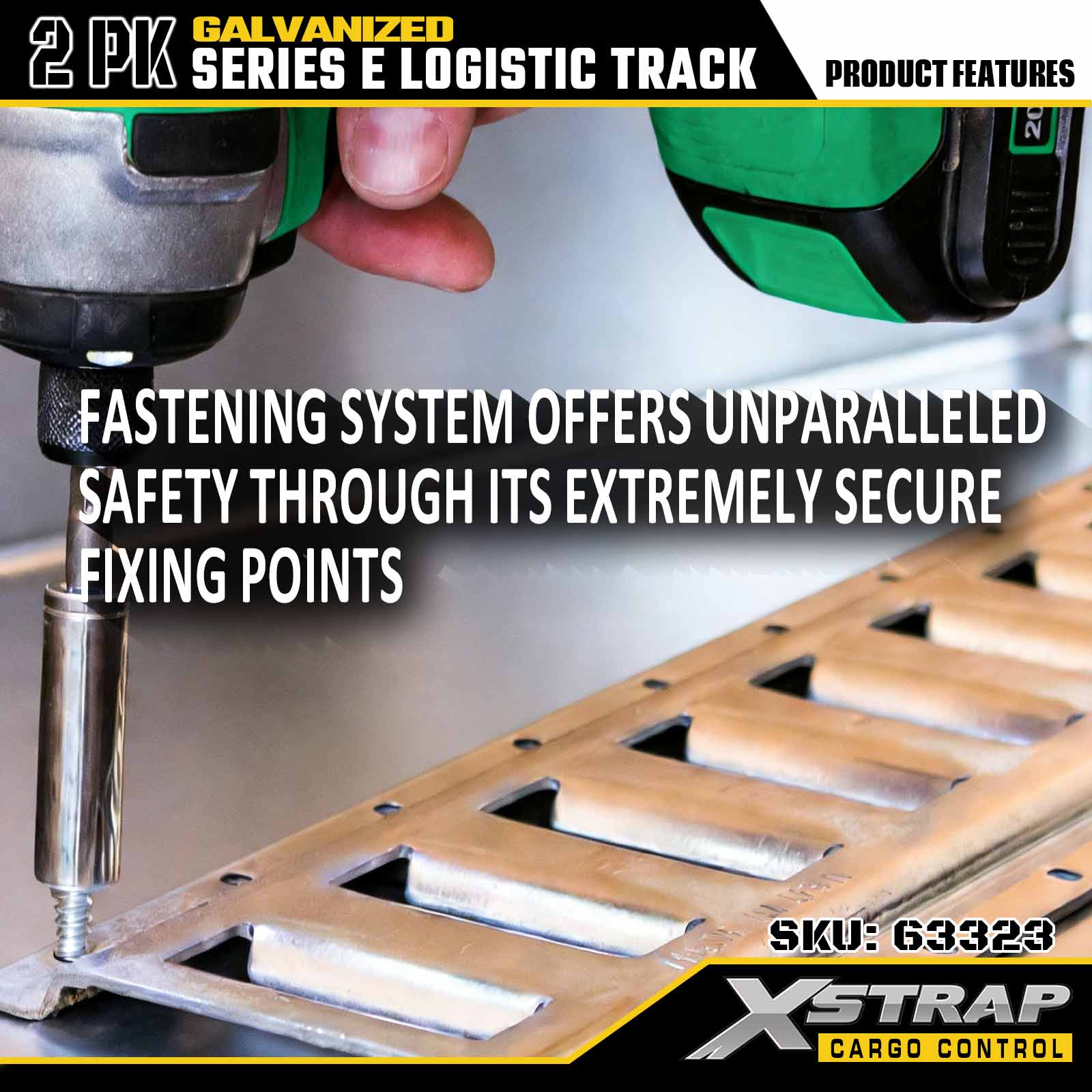 Xstrap 63322 Riel de amarre E-Track plateado galvanizado de 4 pies, acero calibre 12 con acabado galvanizado, capacidad de carga de 6000 libras, paquete de 2 para asegurar la carga