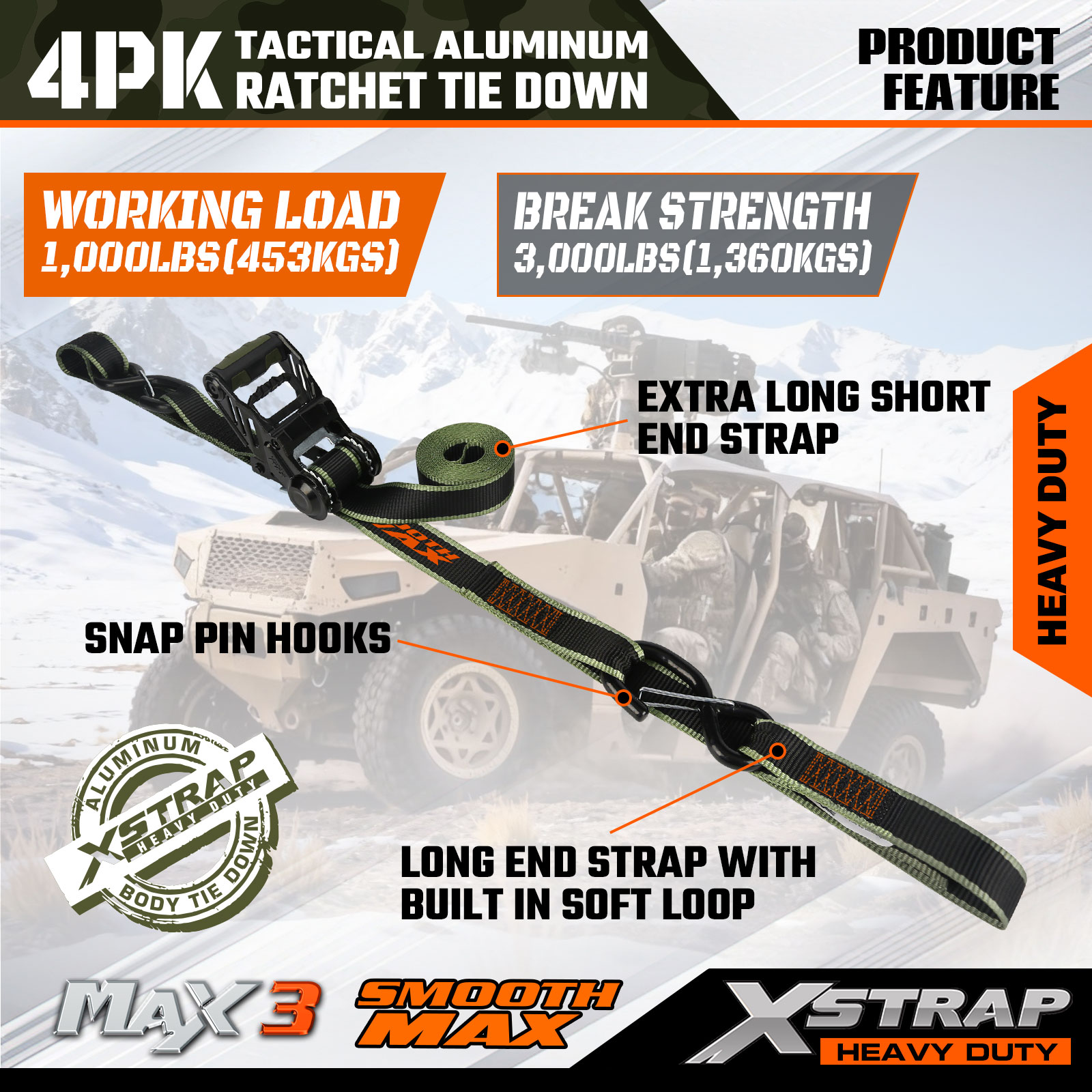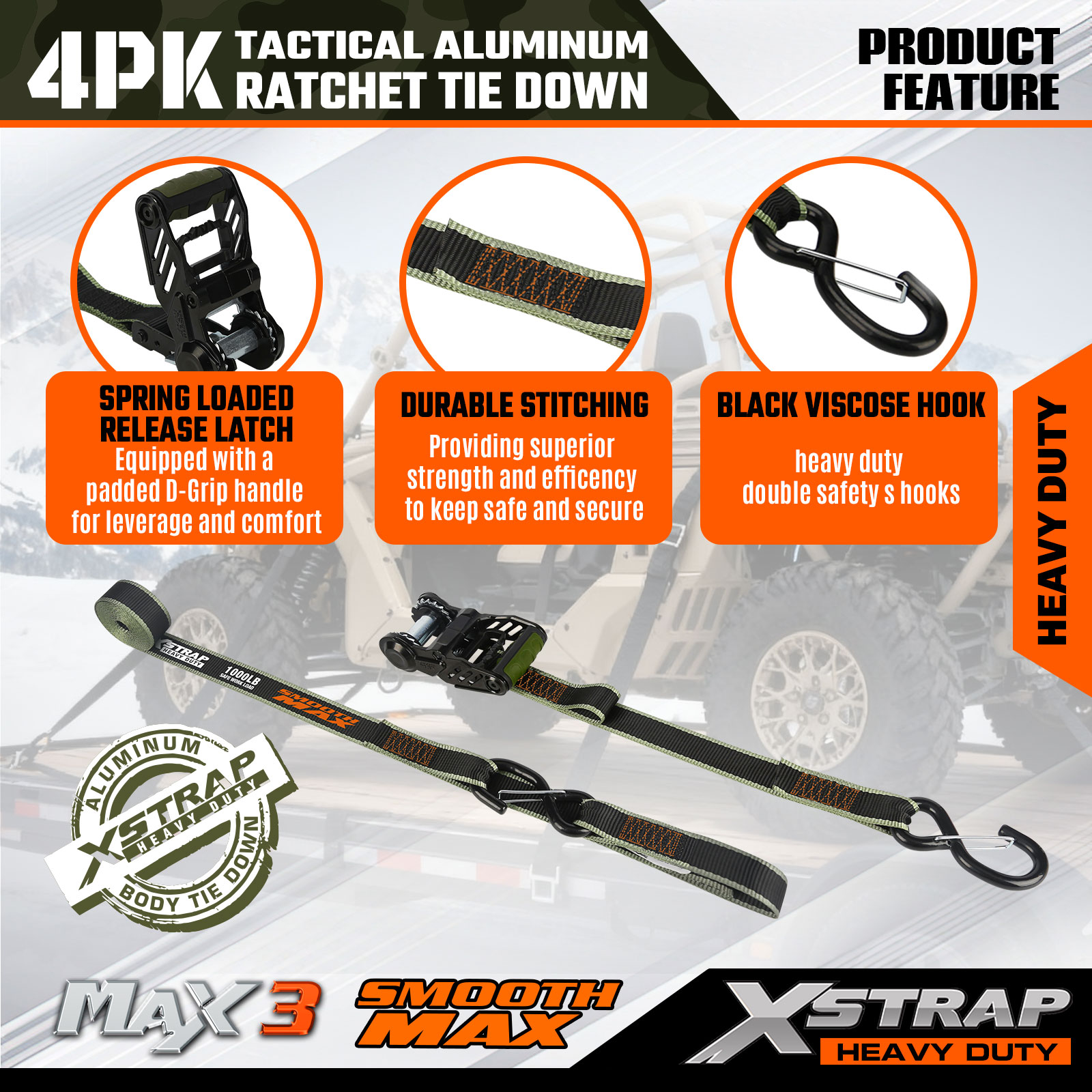 Xstrap Correas de amarre con trinquete táctico de 1,25" x 12 pies, SWL de 1000 lb