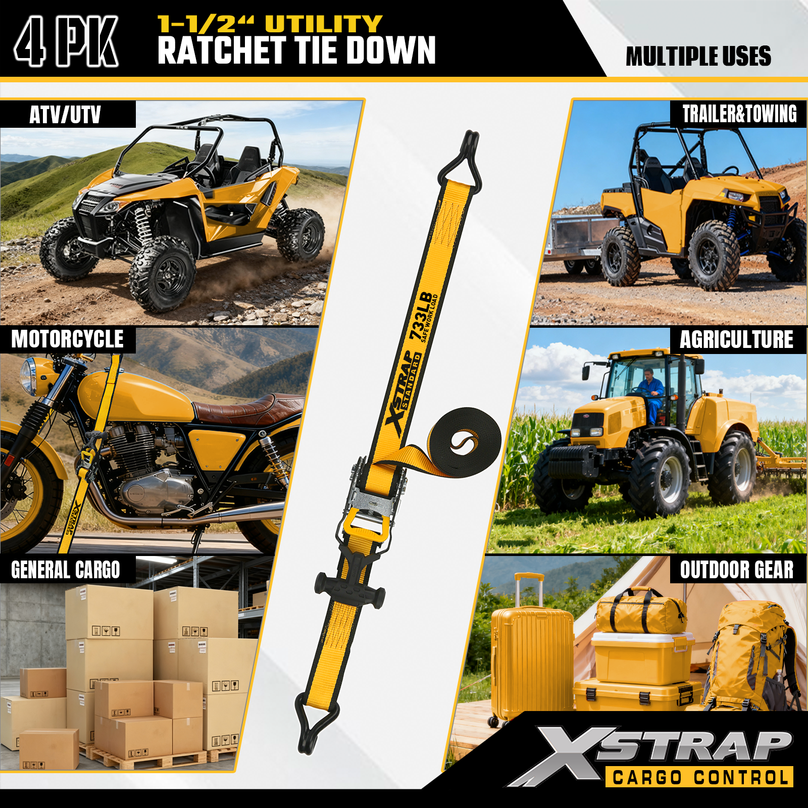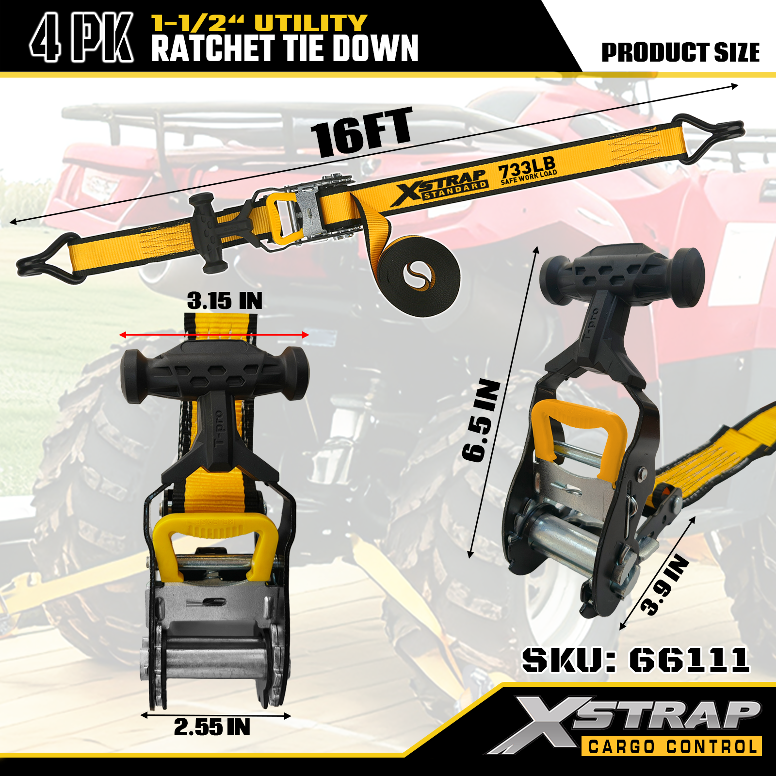 Xstrap Correas de amarre con trinquete y mango en T de 1.5" x 16 pies, SWL de 1,100 lb
