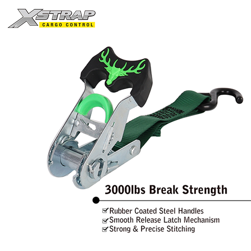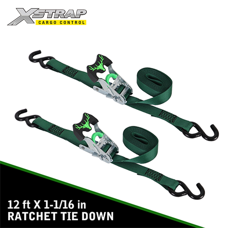Las correas de trinquete de 27 mm (1-1/16 pulgada) con Ganchos S son nuestras nuevas correas de trinquete de diseño. La longitud de la correa es de 14 pies.