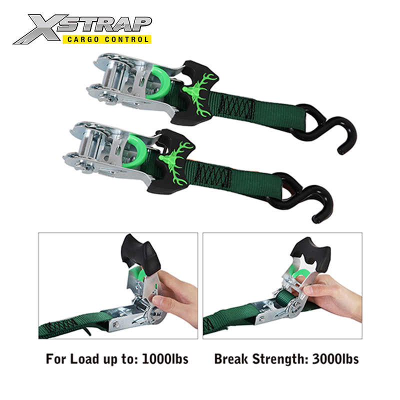 - Corturas de trinquete de 1 1/16 pulgada con Ganchos S: la carga de trabajo segura de nuestras correas de trinquete de 27 mm con Ganchos S es de 1000 libras (453 kgs), la resistencia a la ruptura es de 3000 libras (1360 kgs). Para que pueda usarlos para asegurar los muebles, la maquinaria y cualquier otra carga de servicio pesado.