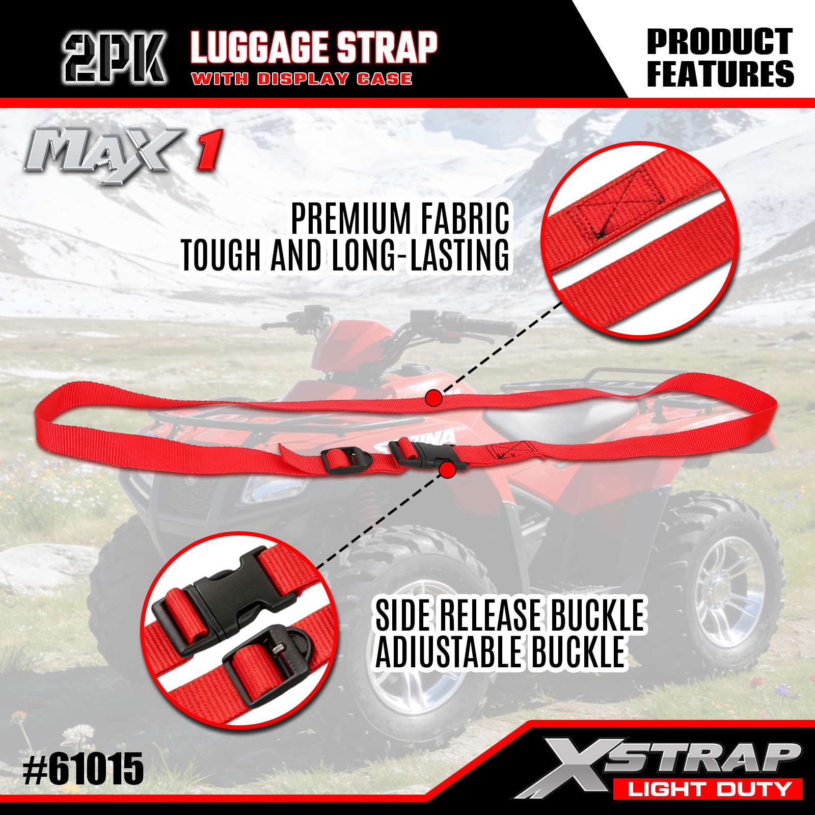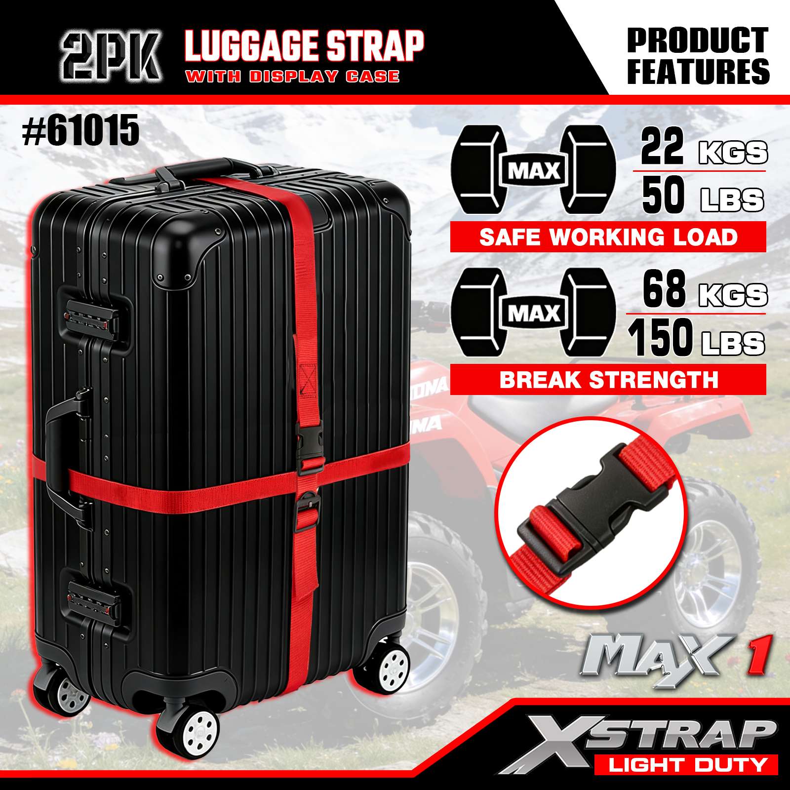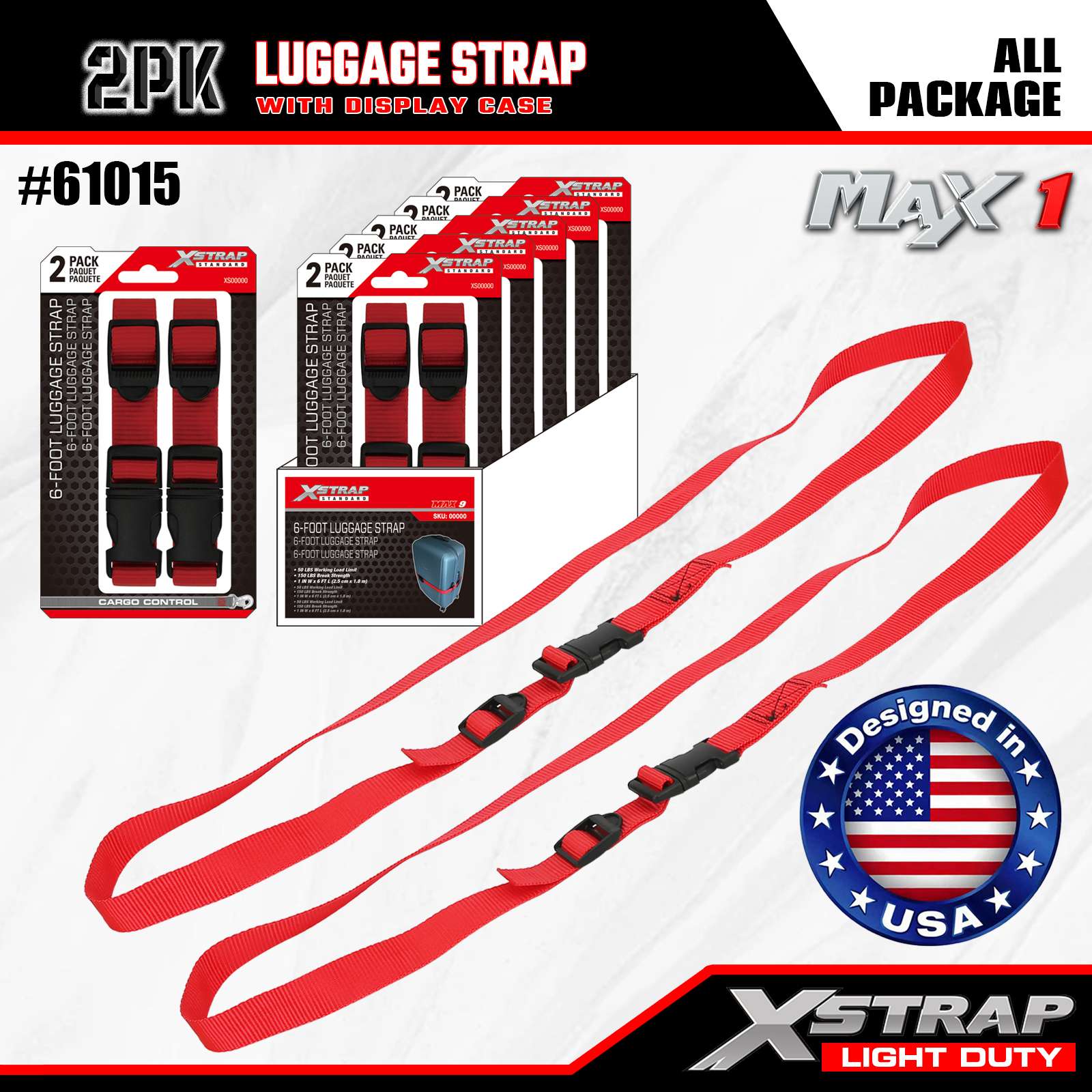 Xstrap Paquete de 2 correas de equipaje ajustables, 1" x 6' - Capacidad de carga de 50 libras - Resistencia a la rotura de 150 libras - Correas de carga para maletas, conector de cinturón de viaje fácil de identificar mantiene la maleta unida, extiende la vida útil de la bolsa, la correa conecta dos bolsas, rojo