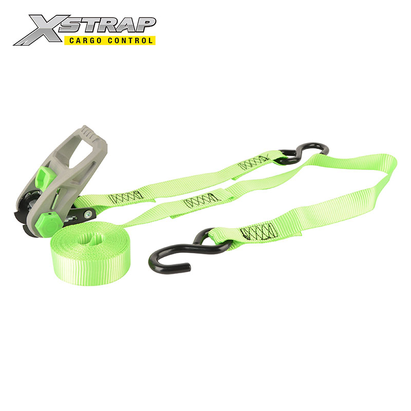 Estas son nuestras correas de trinquete de 1 pulgada de 14 pies con mango de nylon. Una correa para trinquete con un mango de nylon es un conjunto de amarre que combina una cinta de alta resistencia con un mango de trinquete de nylon de fibra de vidrio con fibra de vidrio en lugar de la palanca de acero o aluminio habitual. El mango se puede moldear en una sola pieza o sobrecargar en un núcleo de acero para obtener más resistencia.