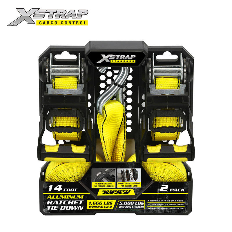 Estas son nuestras correas de trinquete de 1-1/2 pulgada con Ganchos J dobles. Este producto ha recibido grandes elogios de los clientes por su apariencia elegante y su tecnología patentada única.