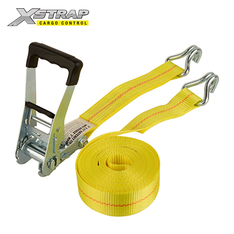 Las correas de trinquete de 2 pulgada con Ganchos de doble J son correas de amarre de servicio pesado diseñadas para asegurar la carga en camiones o remolques. Las correas de trinquete de 2 pulgada suelen ser con cintas de poliéster de alta calidad y Ganchos de doble J duraderos o Ganchos de alambre, que pueden ser compatibles con varios puntos de anclaje. La cinta de alta calidad es resistente a la humedad, los rayos UV y los productos químicos. No se estirará, se pudren o se rasgará, asegurando la funcionalidad duradera.