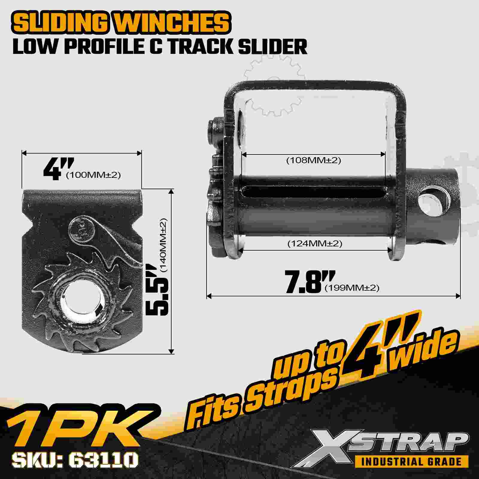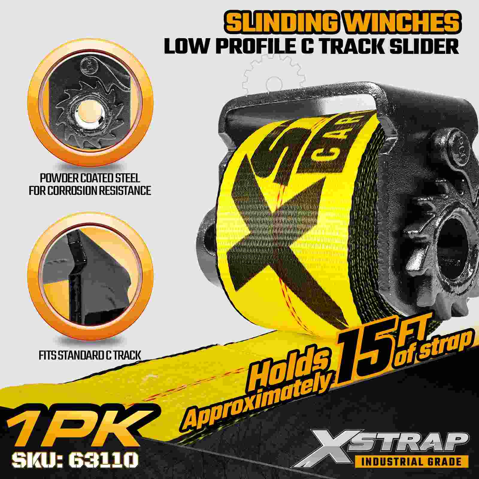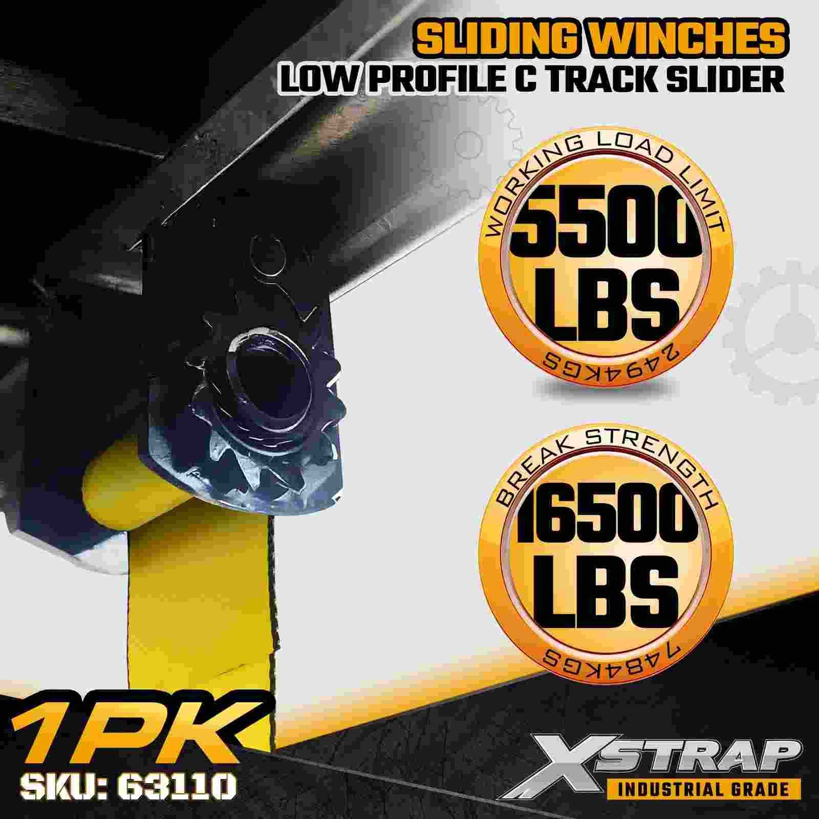 El cabrestante deslizante con riel en C de perfil bajo Xstrap 63110 está diseñado para operadores que necesitan un posicionamiento de amarre ajustable a lo largo de un riel con riel en C mientras mantienen el máximo espacio libre alrededor del borde del remolque. Diseñado para soportar correas de cabrestante de hasta 4 pulgadas de ancho, este cabrestante deslizante de bajo perfil minimiza la interferencia con la carga y el equipo, lo que lo hace ideal para entornos de carga reducidos. Con un marco de acero reforzado de 7 mm y una capacidad de carga máxima de 5500 lb y una resistencia a la rotura de 16 500 lb, proporciona un rendimiento confiable para maquinaria, madera, carga paletizada y otras cargas industriales pesadas.