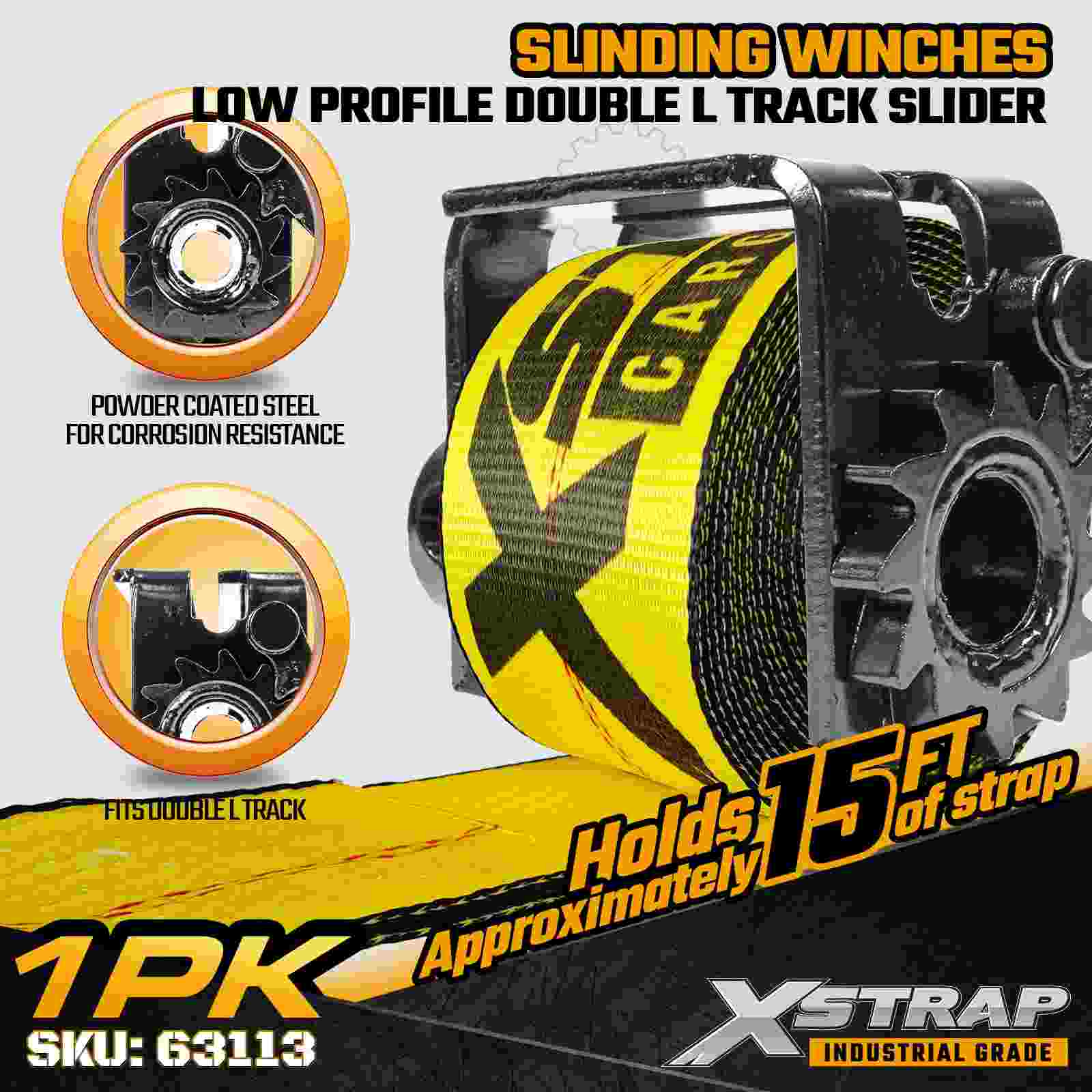 El cabrestante deslizante de doble vía en L de perfil bajo Xstrap 63113 está diseñado para operadores que necesitan una solución de amarre compacta y ajustable compatible con sistemas de doble vía en L. Su estructura de bajo perfil reduce la interferencia con la carga y al mismo tiempo permite un reposicionamiento suave a lo largo de la vía. Construido con un marco de acero reforzado de 7 mm y con un límite de carga de trabajo de 5,500 lb y una resistencia a la rotura de 16,500 lb, este cabrestante deslizante brinda un rendimiento confiable para maquinaria, madera, carga paletizada y otras cargas industriales pesadas.